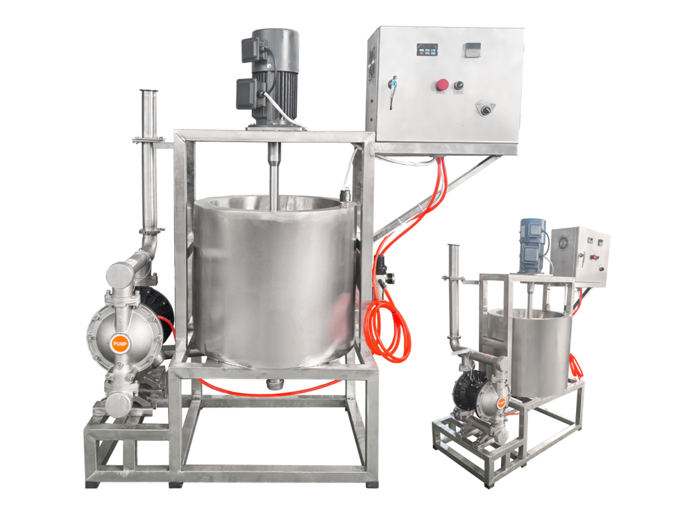 1、自吸攪糖機(jī)為電加熱,采用管道將加熱好的糖漿輸送至噴糖機(jī)使用。