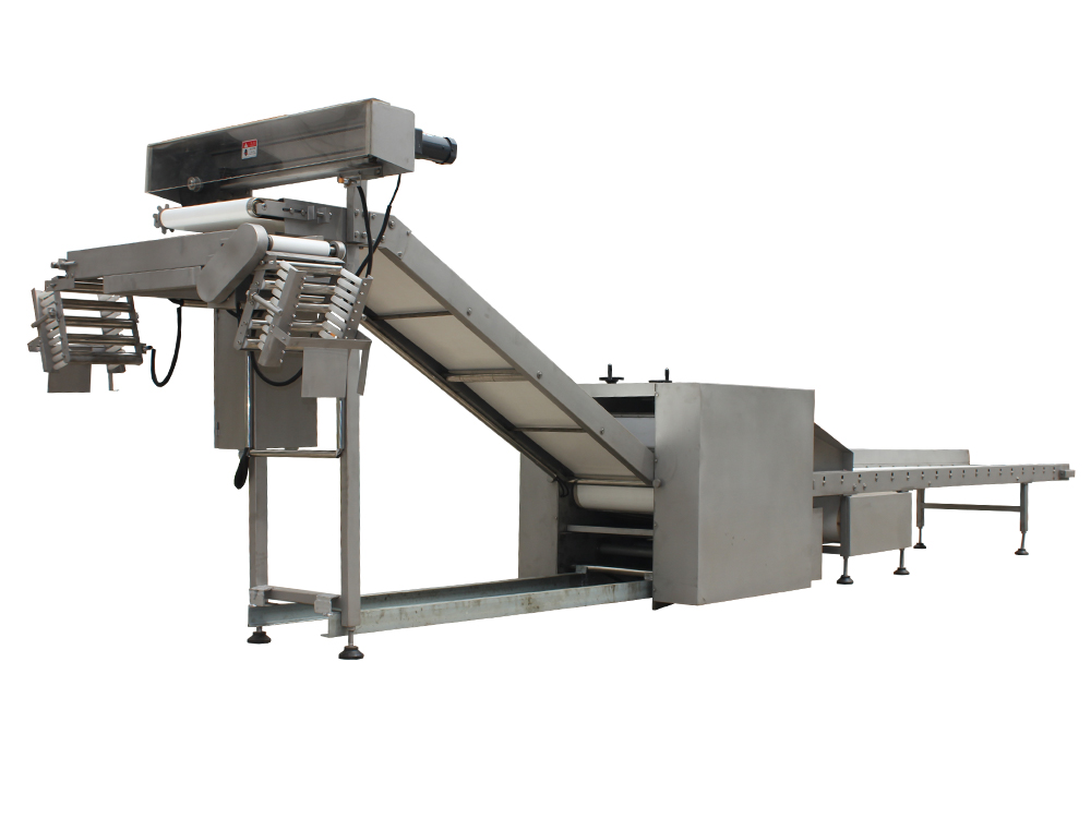 軋面輸送分切機(jī)是用于將面團(tuán)或面片進(jìn)行軋制和輸送,并在特定位置進(jìn)行分切操作。通常與其他食品機(jī)械設(shè)備配合使用,如和面機(jī)、壓延機(jī)等,形成完整的生產(chǎn)線。